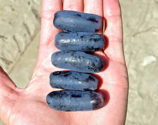 Мевалар: жуда узун ва ингичка, тўқ кўк рангли, чўзилган, учида чуқурчали, ўлчами 20-22 мм х 37-50 мм, вазни 7-9 г, пишганида деярли қора бўлади.
